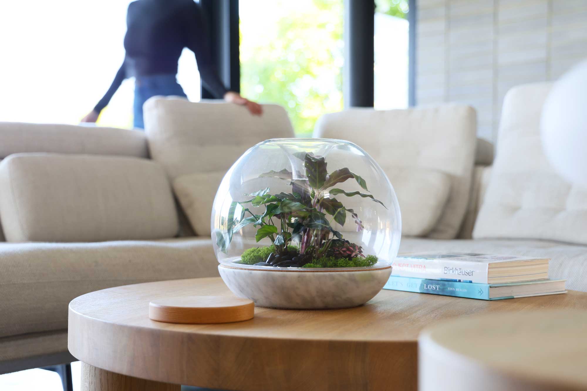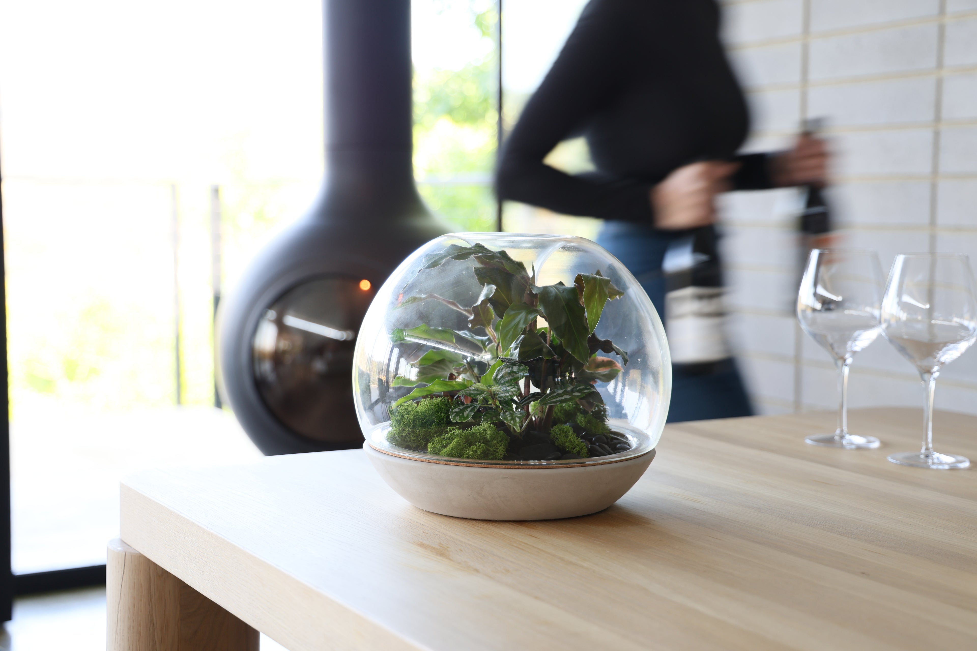 Biodome in Concrete is a stunning vivarium that magnifies the beauty of ferns, small plants and mosses under its glass dome- carefully designed with an opening in the top to enable watering and airflow.